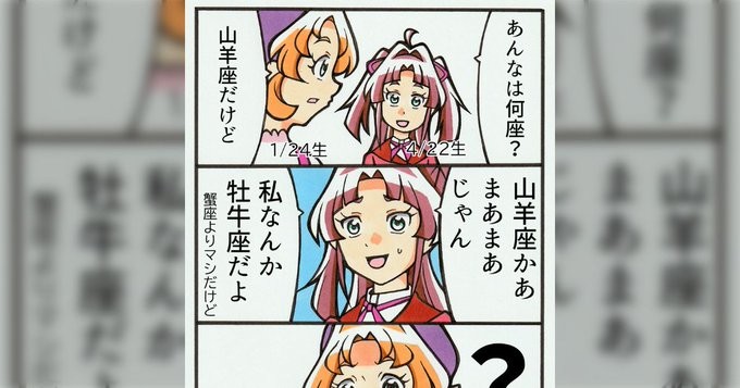 «  なお、魚座、登場は遅いわキャラはナルシストだわで、ガチで最下位やった印象。「蟹座の男と同じくらい弄られる存在がいるんですよ。さそり座の女って言うんですけど」。