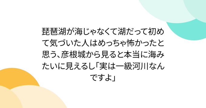 琵琶湖が海じゃなくて湖だって初めて気づいた人はめっちゃ怖かったと思う、彦根城から見ると本当に海みたいに見えるし「実は一級河川なんですよ」 – Togetter