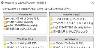 【レビュー】Windows 10のシステムフォントをXPや8/8.1時代などのフォントに一発変更できるツール – 窓の杜 IT / Hack X Bluesky Facebook LinkedIn 2015/10/27 【レビュー】Windows 10のシステムフォントをXPや8/8.1時代などのフォントに一発変更できるツール – 窓の杜 « メイリオにしよう。「本ツールを用いれば、ワンクリックで手軽にWindowsのシステムフォントを変更できる」。